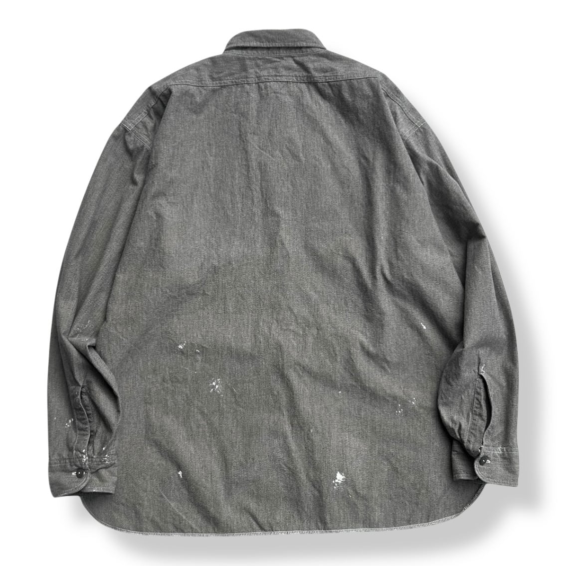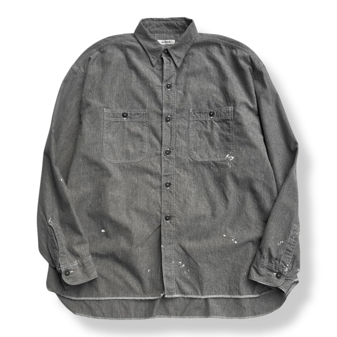 INTERIM (インテリム) MILK PAINT VINTAGE WASH BLACK SHUTTLE CHAMBRAY US NAVY WORK SHIRT TYPE2 [IT26S127]